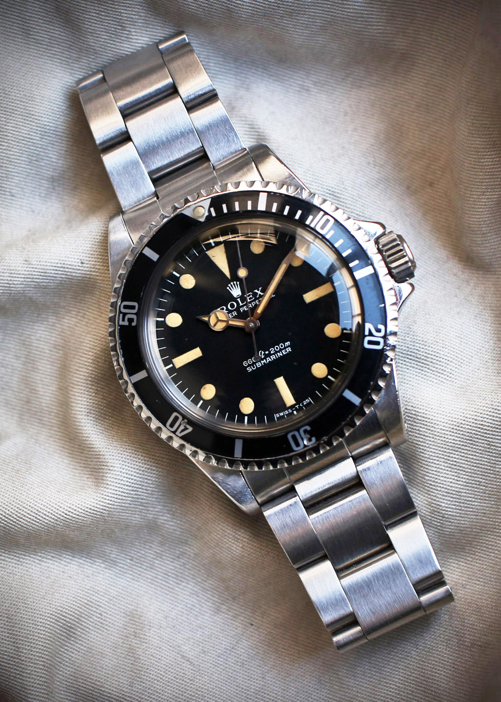 こちらの時計は灼けが少ない綺麗目のインデックスに赤いSUBMARINER表記が良く映える