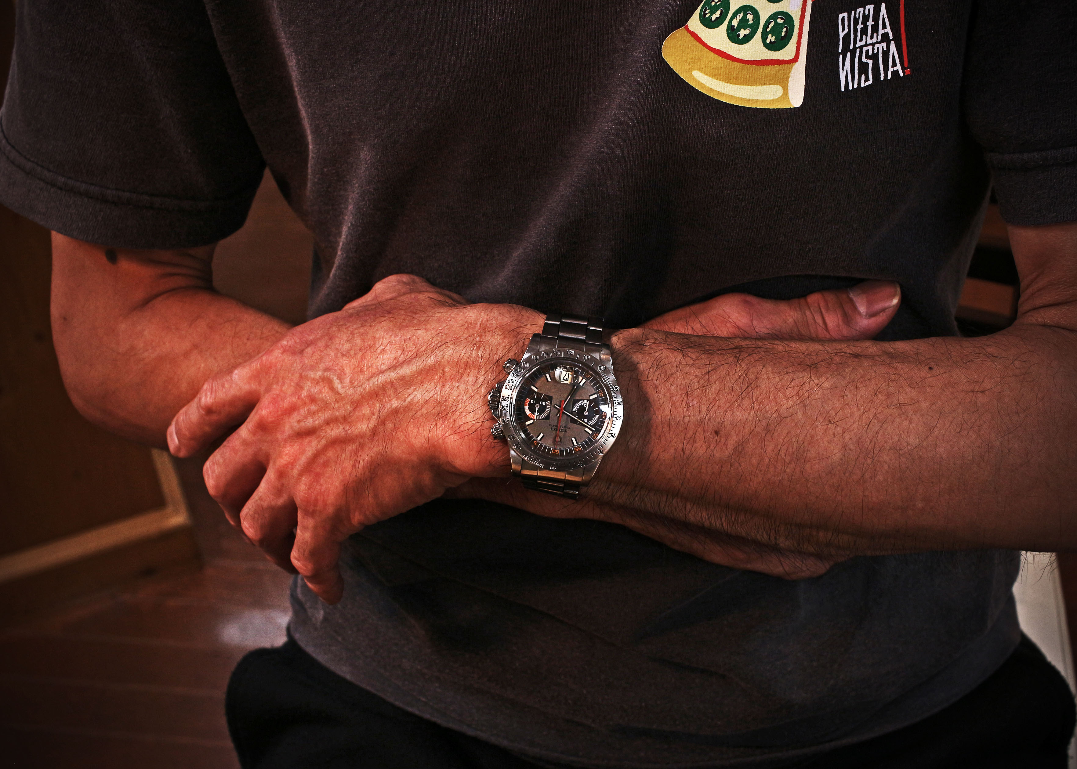 コンビモデルのこちらの時計はインデックスの形状からフジツボダイアルと