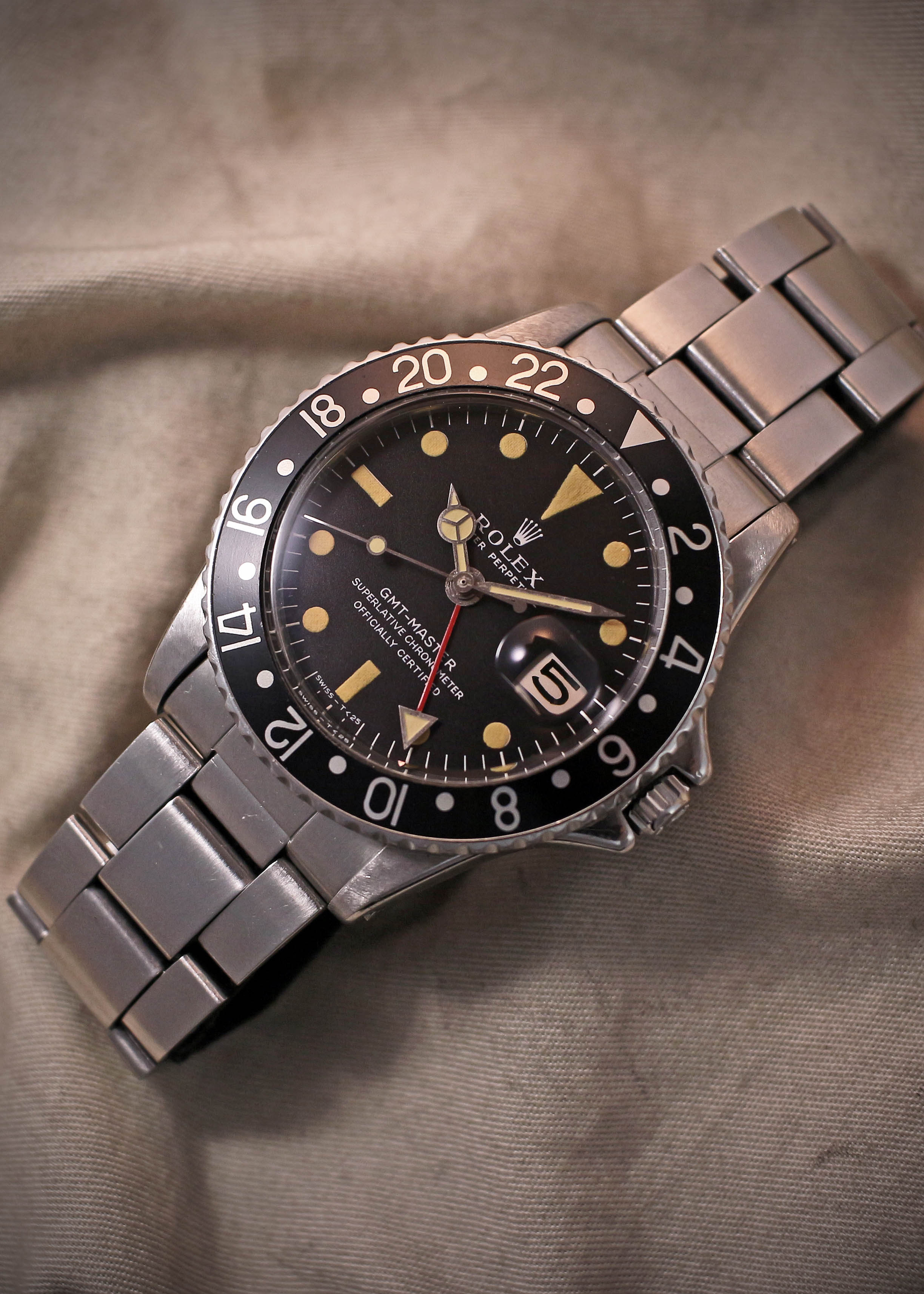 こちらの個体ですがグロッシーなブラックダイアルに銀色の枠がついたインデックスが