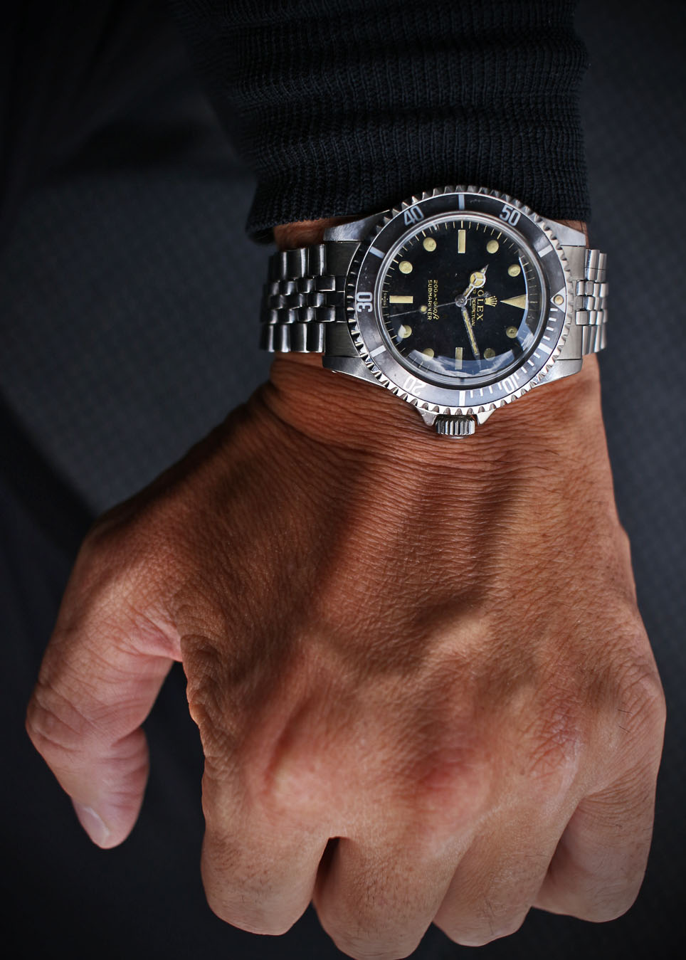 ケースコンディションも良好で伸びの少ない希少なBIGロゴのUSライスジュビリーブレスが付いている点やサブらしいブルーグレイにエイジングしたベゼルも見所の一つです。
