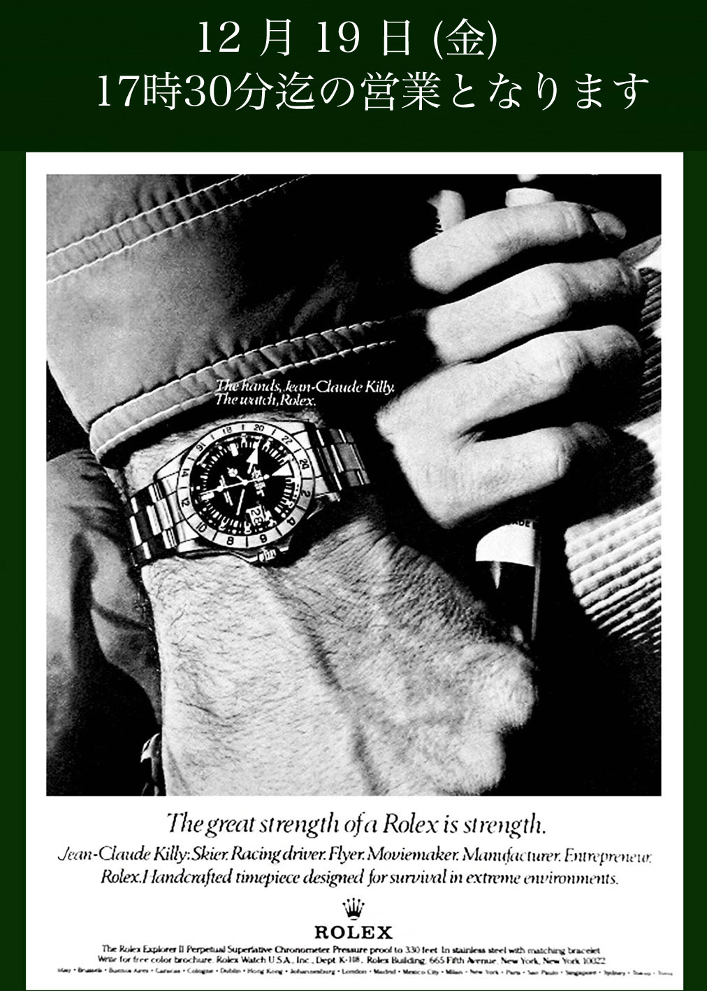 12 月 19 日 (金) の 営業時間は 17時30分迄 とさせて頂きます。