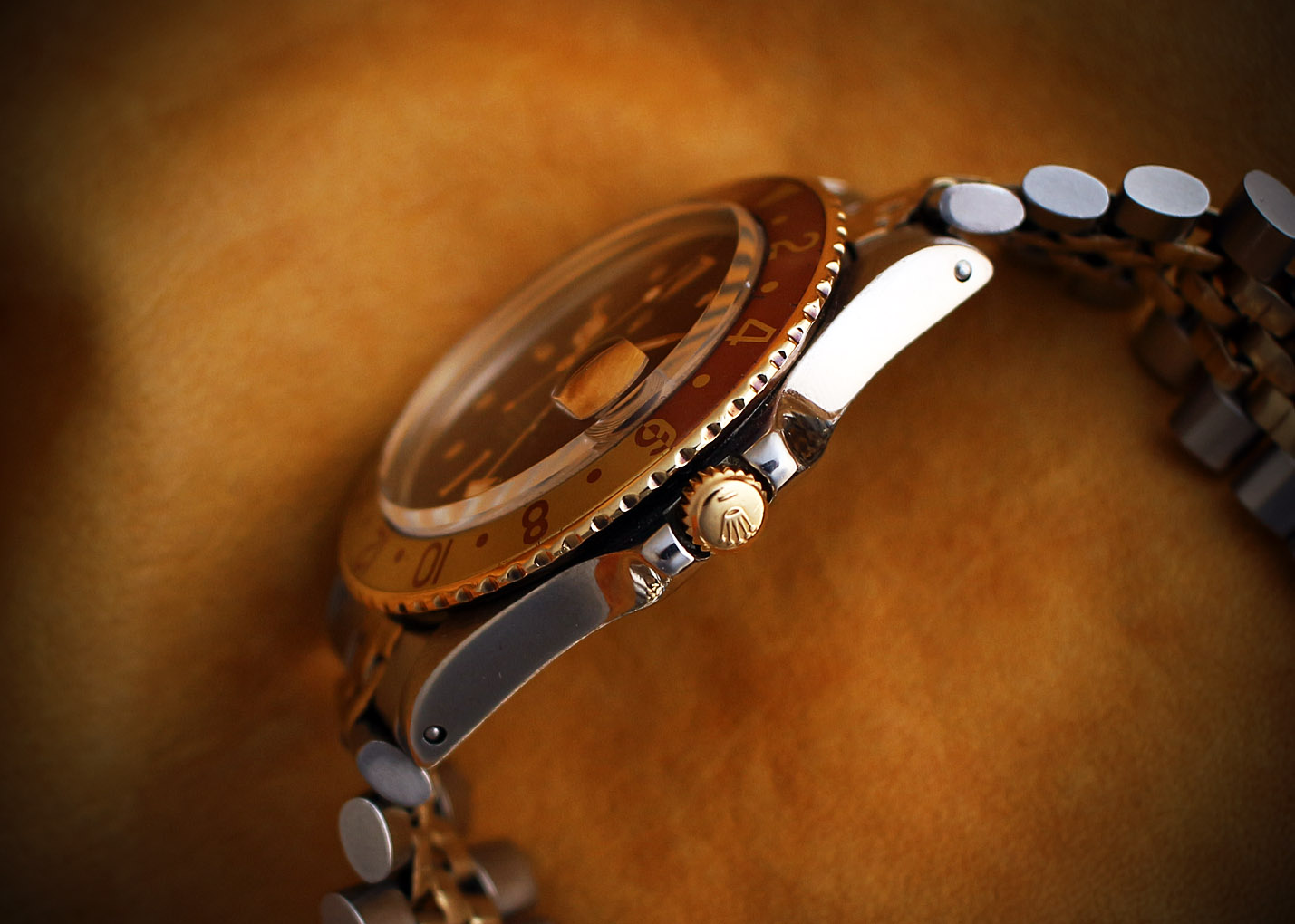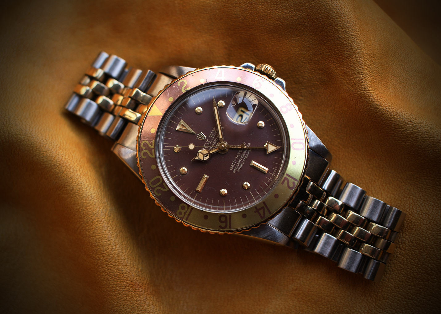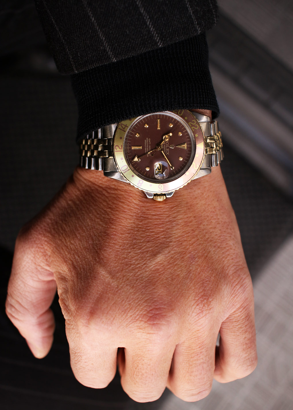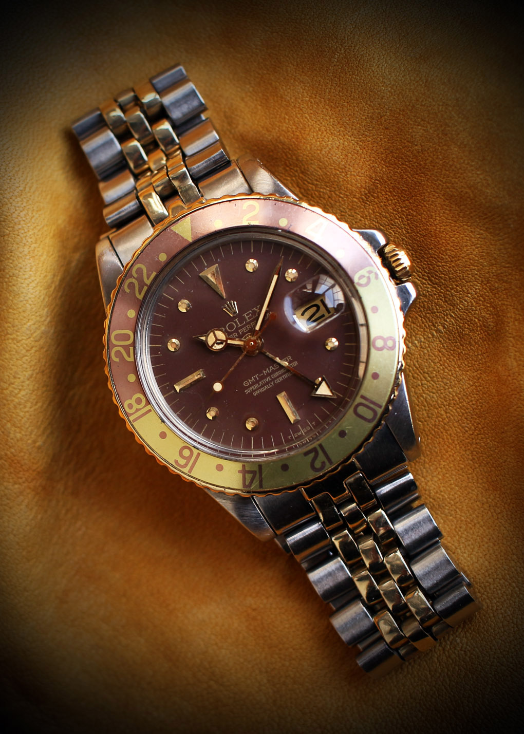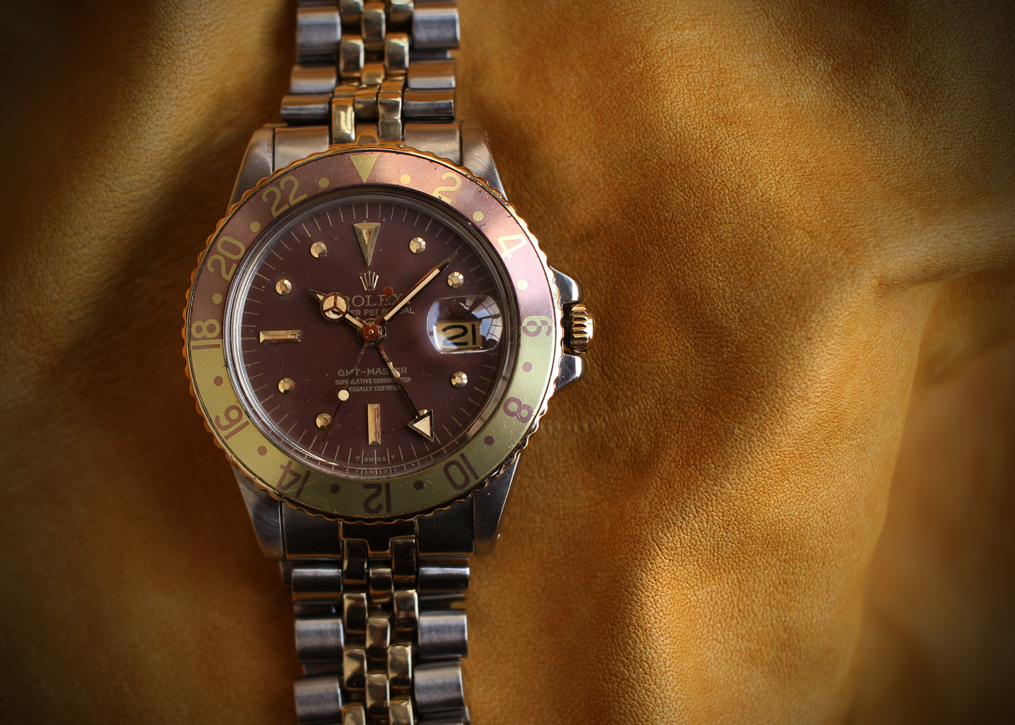 インデックスと針が程よく灼けて綺麗に退色したベゼルとのバランスが新鮮な魅力を引き出しています。