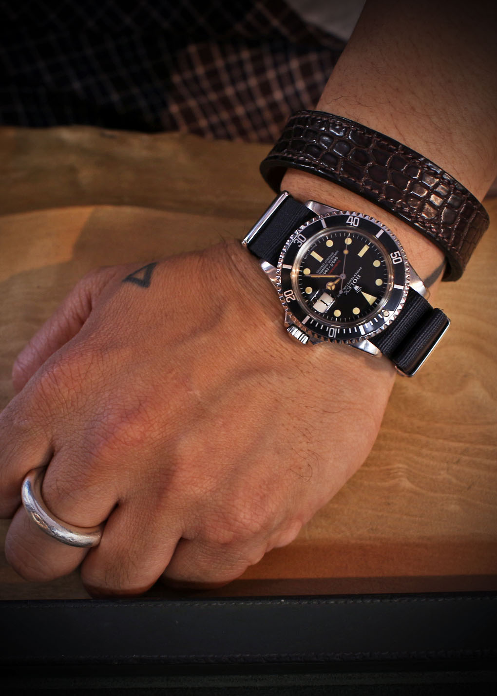 マークVとしては珍しく色濃く綺麗に灼けたインデックスに赤いSUBMARINER表記が絶妙なバランスでヴィンテージらしい渋さを醸し出したお勧めの一本です。ご購入頂きまして誠に有り難う御座いました、末永くご愛用下さい。