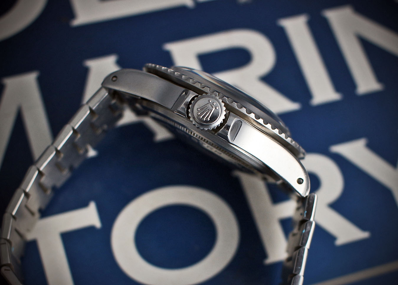 落ち着いたブルーのダイアルと経年変化したベゼルと共に絶妙のバランスで