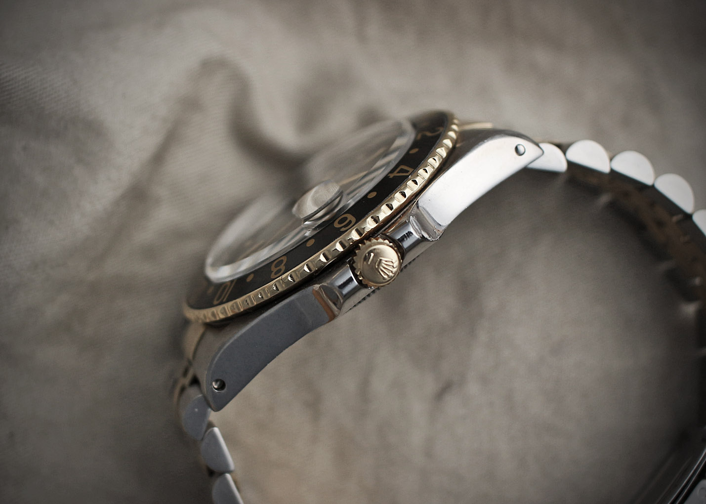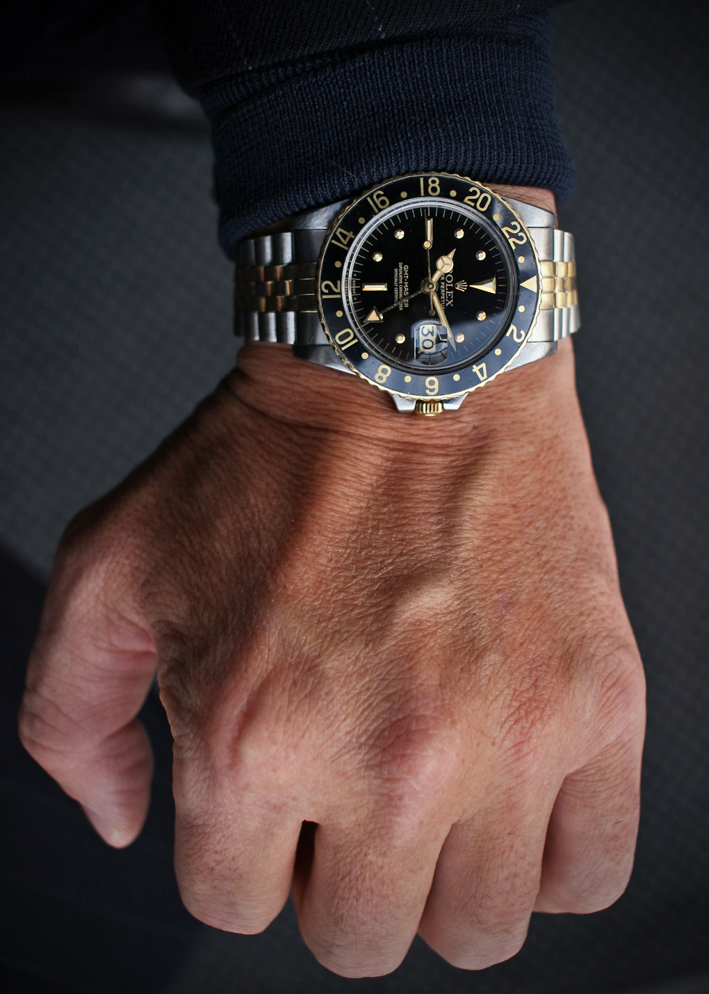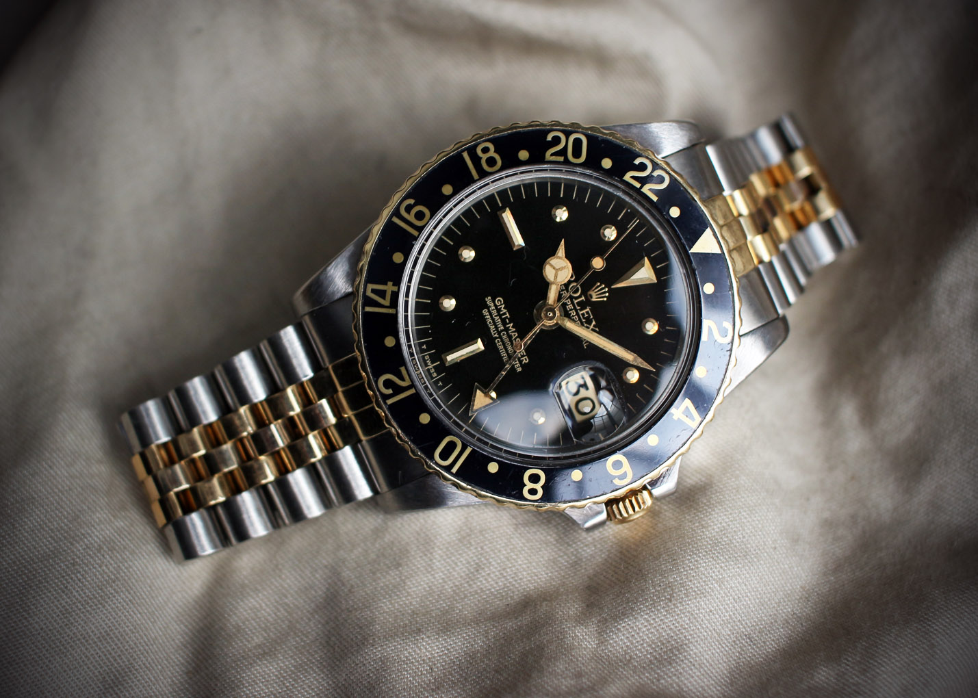ダイアル、針共にクリーム色に灼けていてブラックベゼルとのバランスが絶妙です。