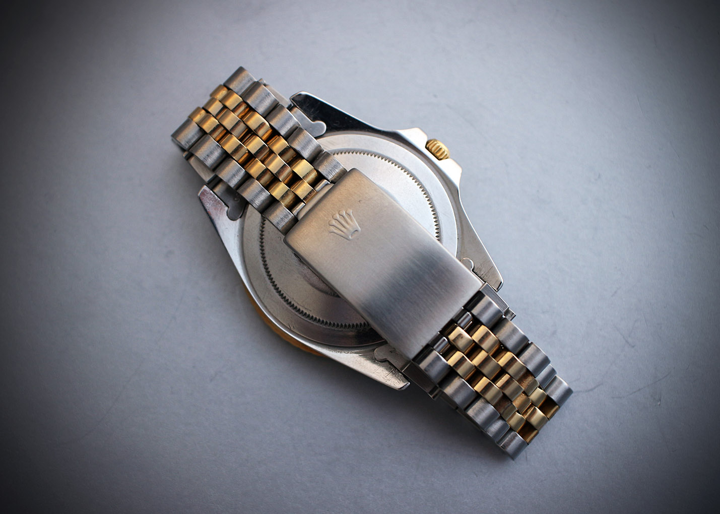 キャリバーは名機と呼ばれたCAL.1570を搭載しています。ダイアル、針共にクリーム色に灼けていて綺麗なブルーグリーンに退色したベゼルとのバランスが絶妙です。ジュビリーブレスが付いていてスポーツモデルながらドレッシーな印象も与えて