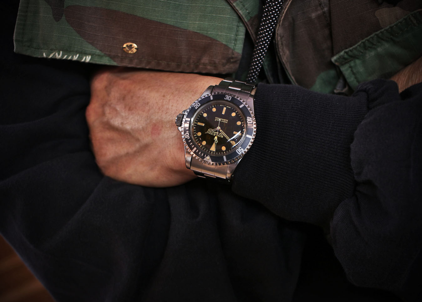ヴィンテージサブらしいブルーグレイにエイジングしたベゼルも見所の一つです。