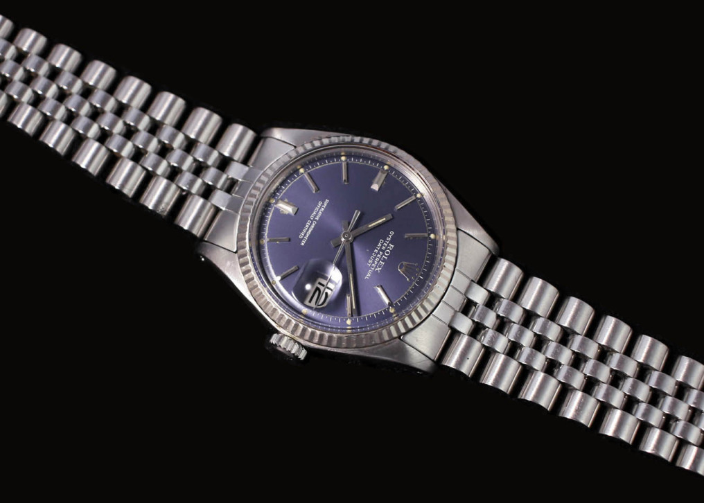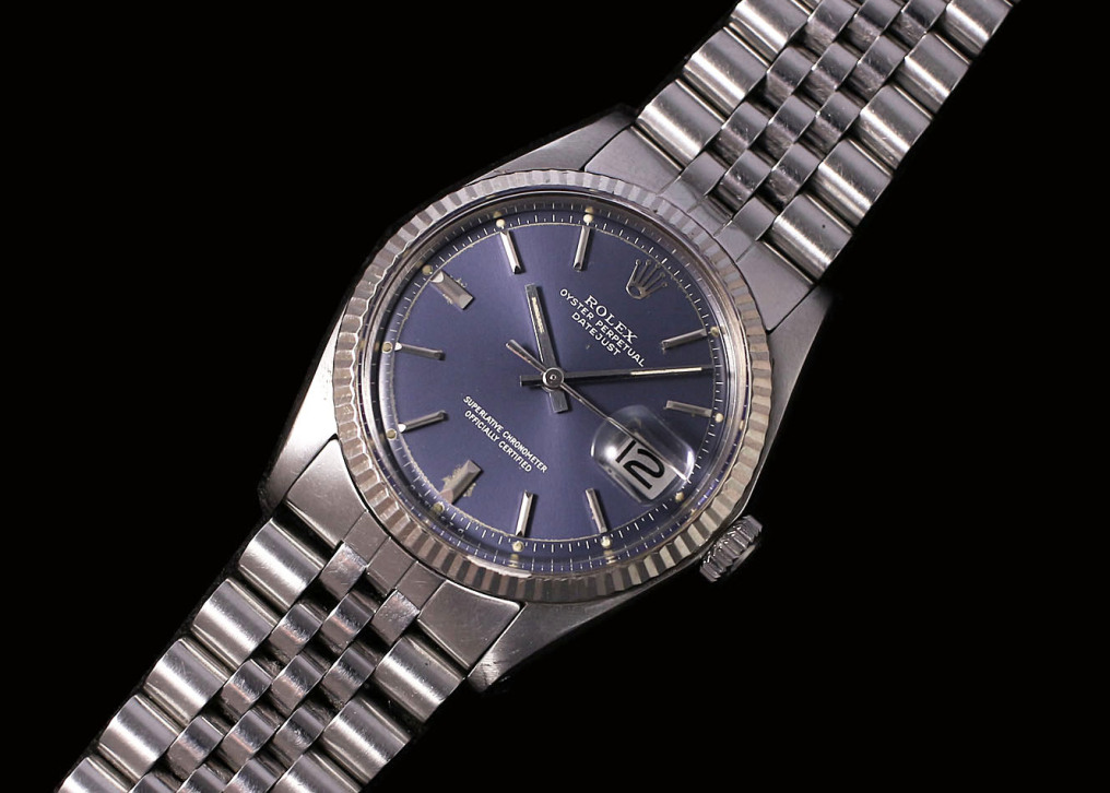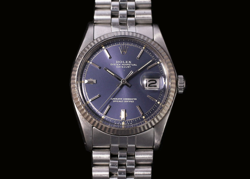 こちらの時計ですがこの年代独特のブルーのダイアルカラーにフルーデットのホワイトゴールドベゼルの組み合わせが