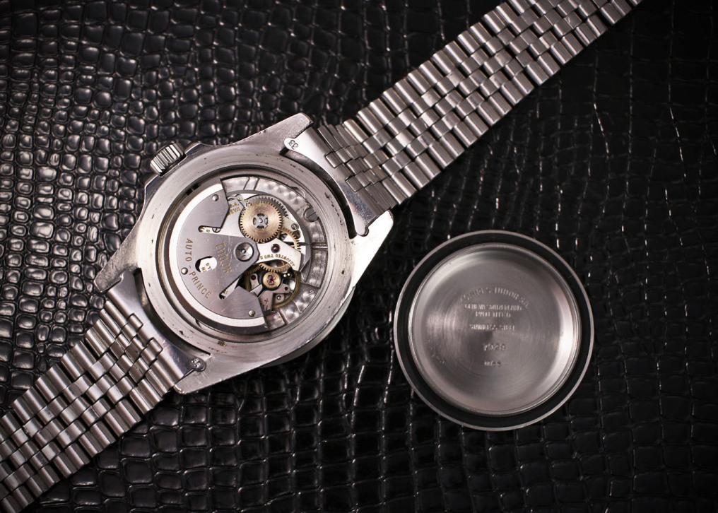 人気のドーム風防を通して見えるダイアルインデックスと針は
