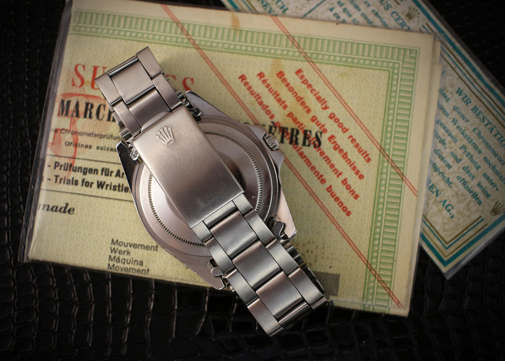 こちらの個体はミラーダイアルからマットダイアルに替わった最初期のダイアルでROLEXのロゴのEの真ん中の