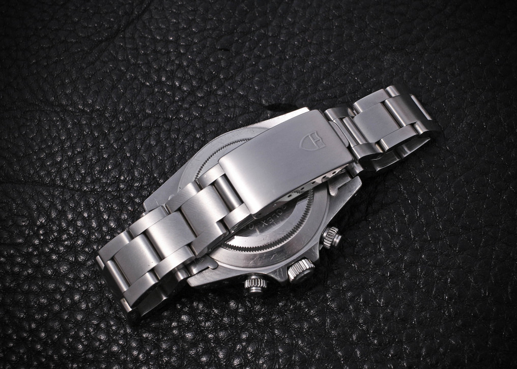 発売されたクロノタイムシリーズのベゼルはプラスチックタキメーターベゼル、回転ベゼル、ステンレスベゼルの3種類が展開され中でもこちらのプラスチックベゼルの人気がダントツです。